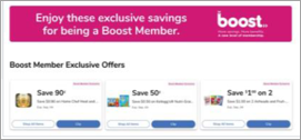 Boost Member Exclusives are Custom Incentives intended to provide strong discounted offers, a differentiated incentivization, to existing value seeking and highly omni-channel Boost members.