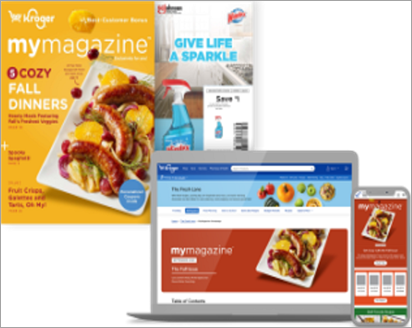 MyMagazine Ads Ads in MyMagazine featuring personalized coupons, recipes and more produced by Kroger and 84.51° to provide a personalized experience tailored to customers' unique interests and preferences. can be used to drive Brand awareness across MyMagazine households. Whether you're launching a new product or have a national Brand initiative, these ad placements can help meet your goals.