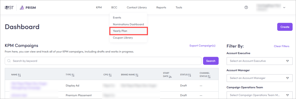 The Yearly Plan dashboard is for planning purposes only. You still have to create nominations for each event.
