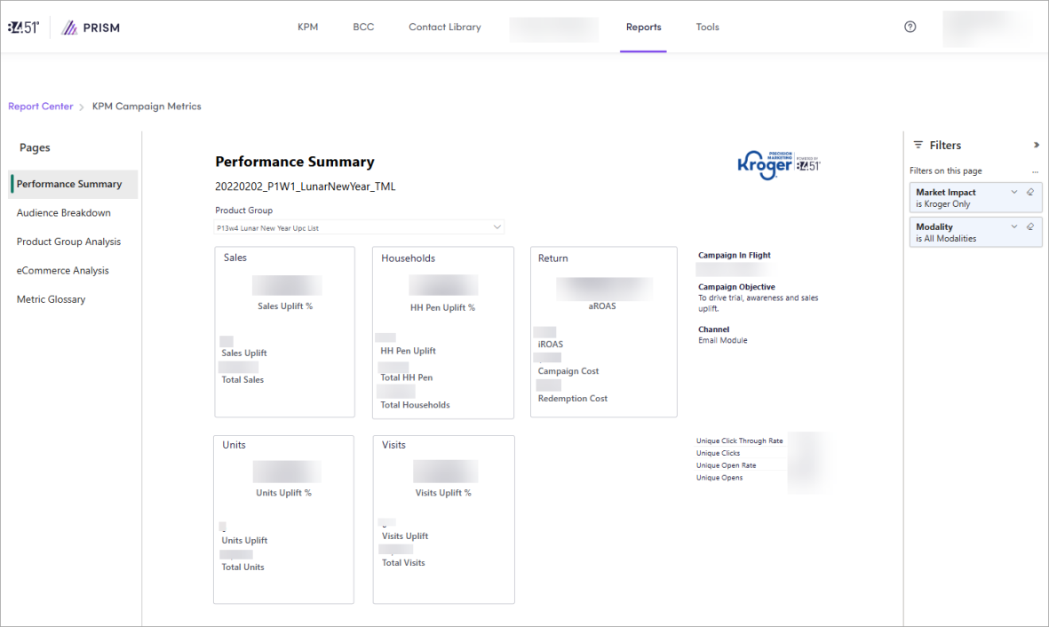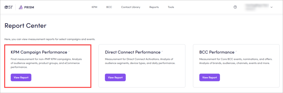 Click View Report on the KPM Campaign Performance card.