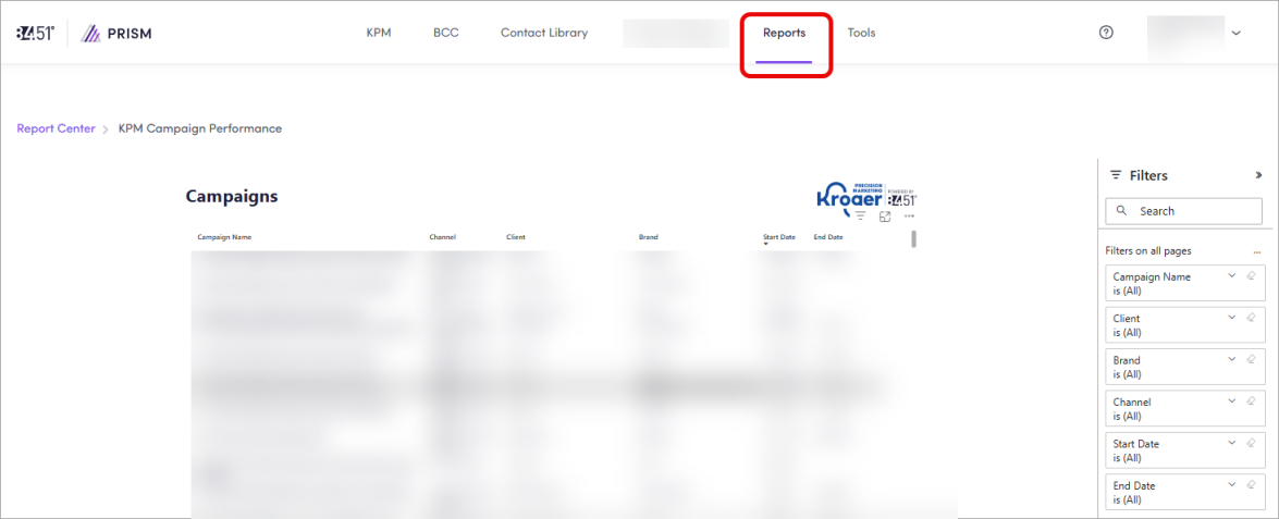 From 84.51° Prism, click Reports.