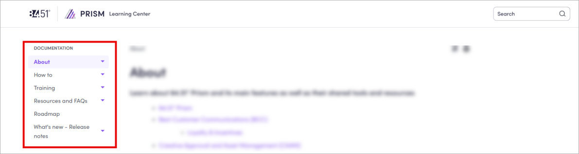 The left-hand navigation menu is your structured map through the Learning Center providing an organized list of sections and topics, so you can navigate efficiently without having to search or scroll extensively.
